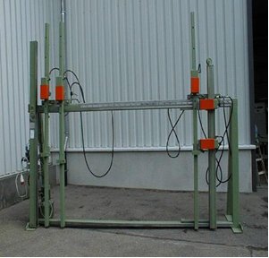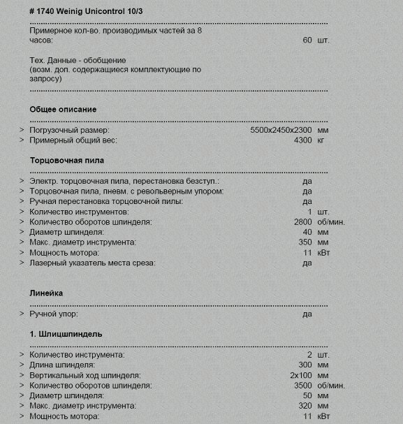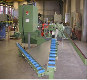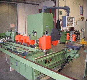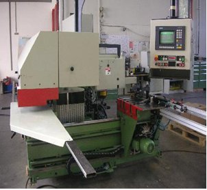 Пила циркулярная, приводимая в движением двигателем 3 кВт, скорость вращения 3000 об/мин, диаметр циркулярной пилы 400 мм, максимальная глубина разреза 125 мм, горизонтальное перемещение, управляемое электронным процессором, вертикальное перемещение, осуществляемое при помощи пневматических цилиндров. Лезвие для пилы не включается в поставку.