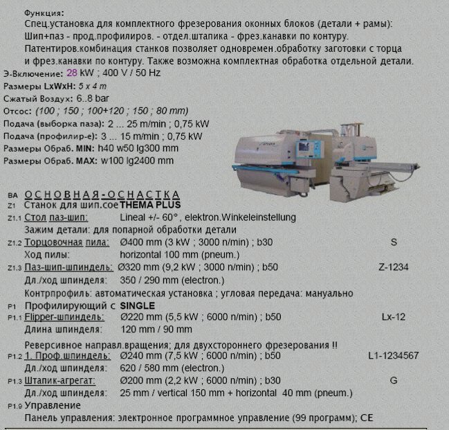 На станке установлено ПО (применимое для изготовления окон обычного профиля), с помощью которого можно автоматически создавать файлы рабочих программ в зависимости от типа окна.